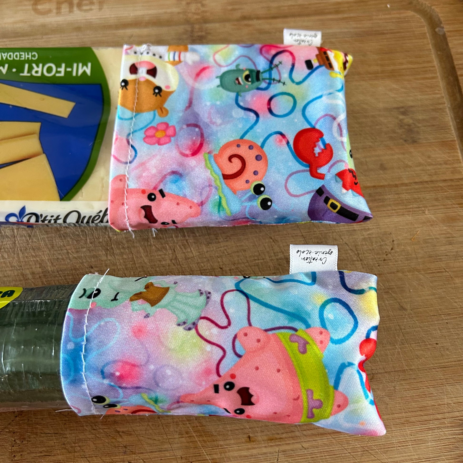 Finis le gaspillage de bout de concombre/fromage sèche. Une superbe plus pour votre virage zéro déchet en plus d’être superbe avec le beau tissus utilisé .