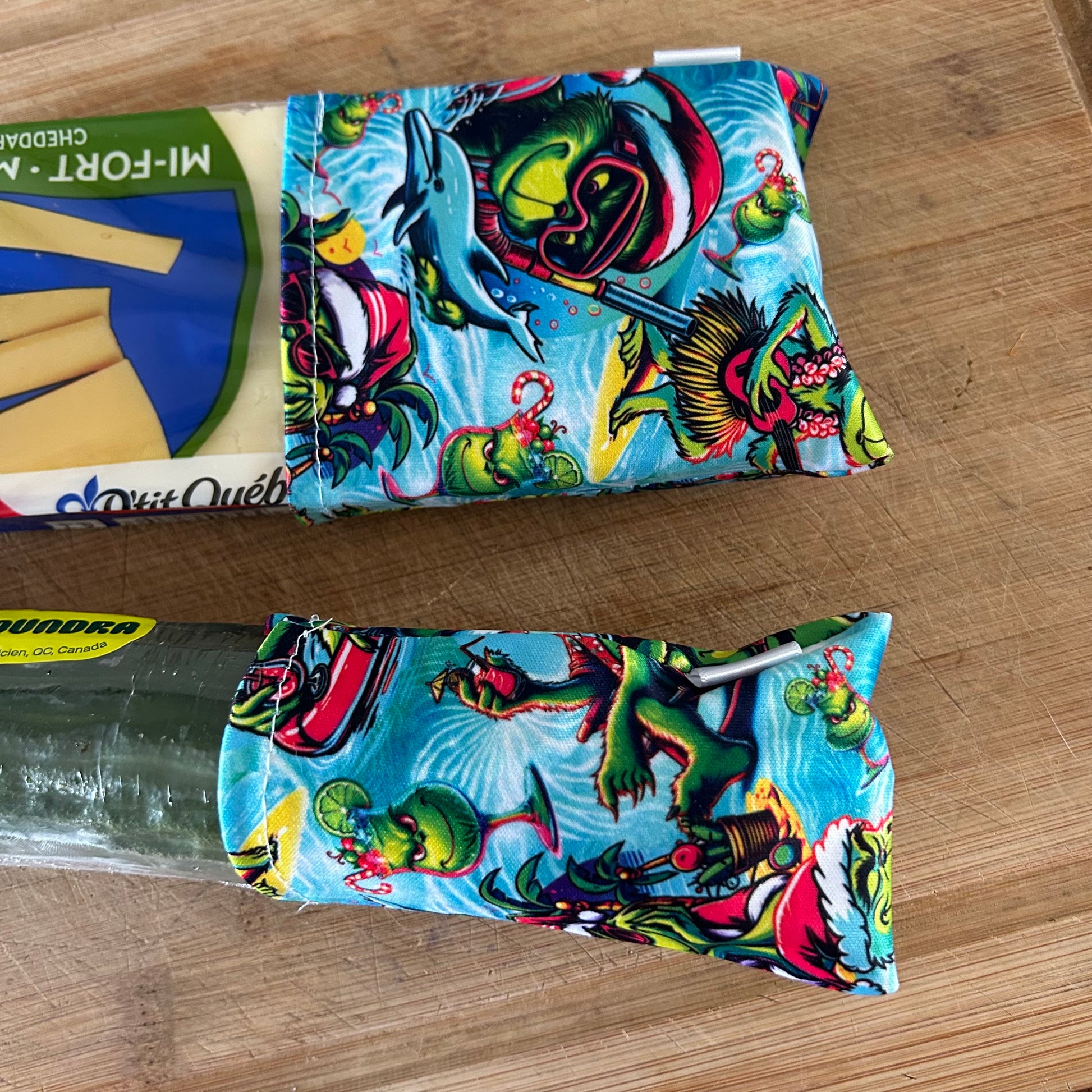 Finis le gaspillage de bout de concombre/fromage sèche. Une superbe plus pour votre virage zéro déchet en plus d’être superbe avec le beau tissus utilisé .