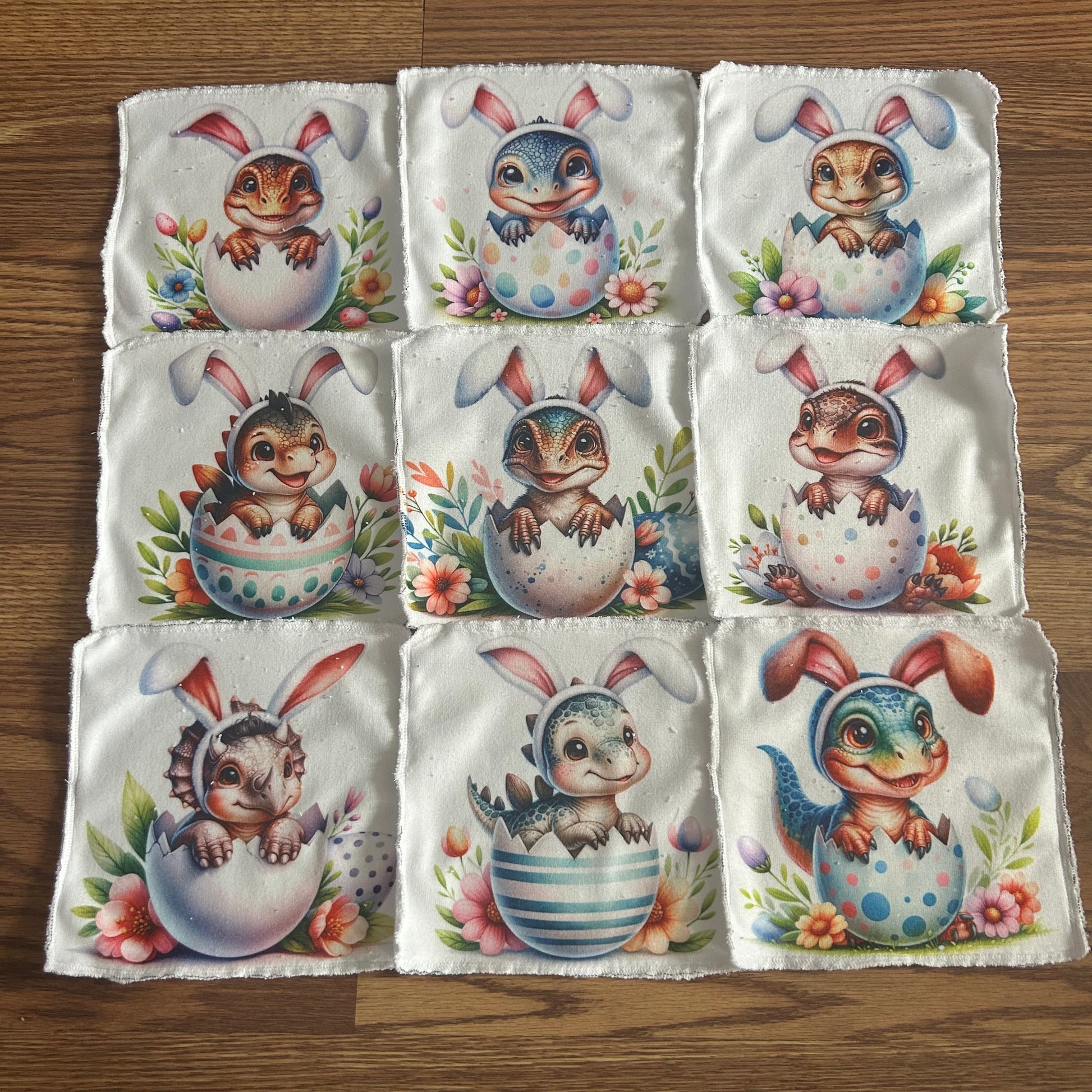 Débarbouillette dino Pâques